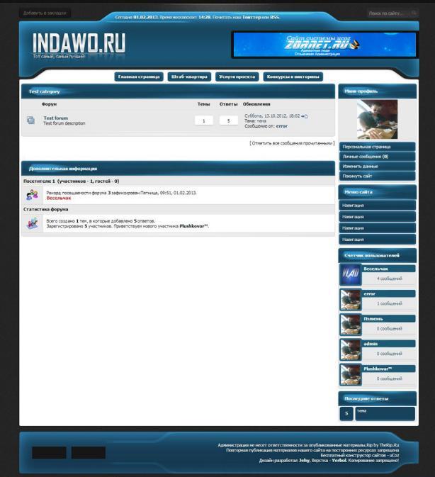 Шаблон в темно синих тонах сайта indawo системы ucoz
