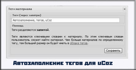 Скрипт авто заполнение тегов сайта uCoz