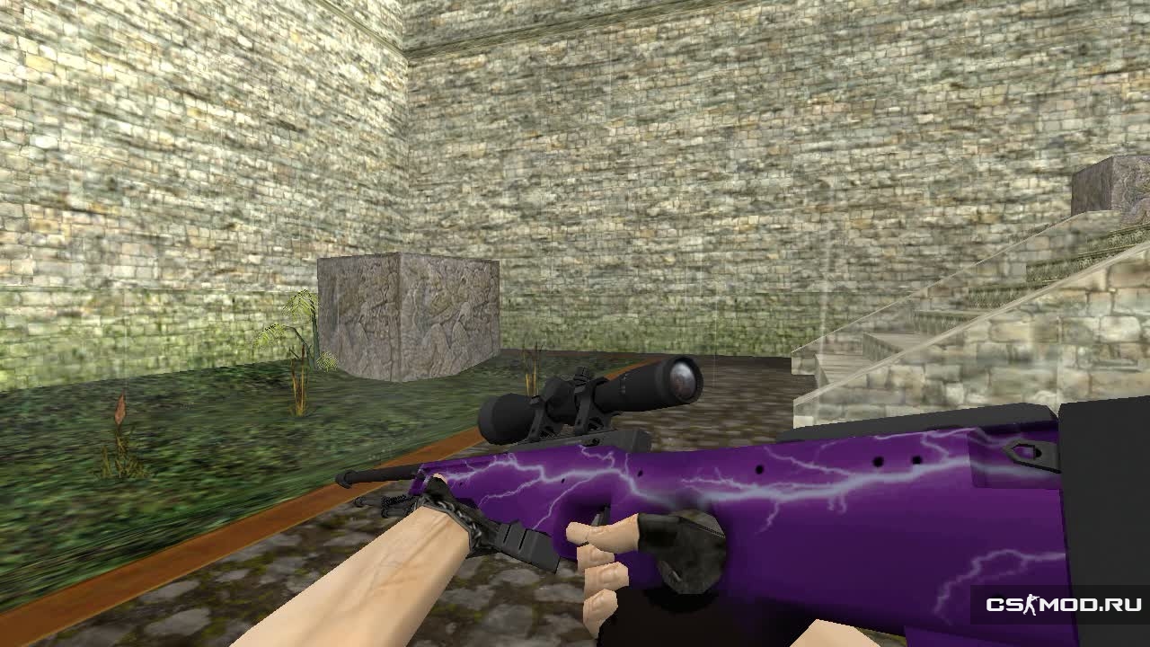 Наконец-то одна из популярных моделей AWP под названием «Удар молнии» перекочевала из CS:GO в старую добрую CS 1.6, а главное — в HD-качестве. Несмотря на довольно давний релиз данной модели, она остается фаворитом среди любителей пурпурных тонов и динамичных орнаментов. А также архив содержит в себе файлы анимации для осмотра оружия аналогично Cs:Go. Удачной игры!